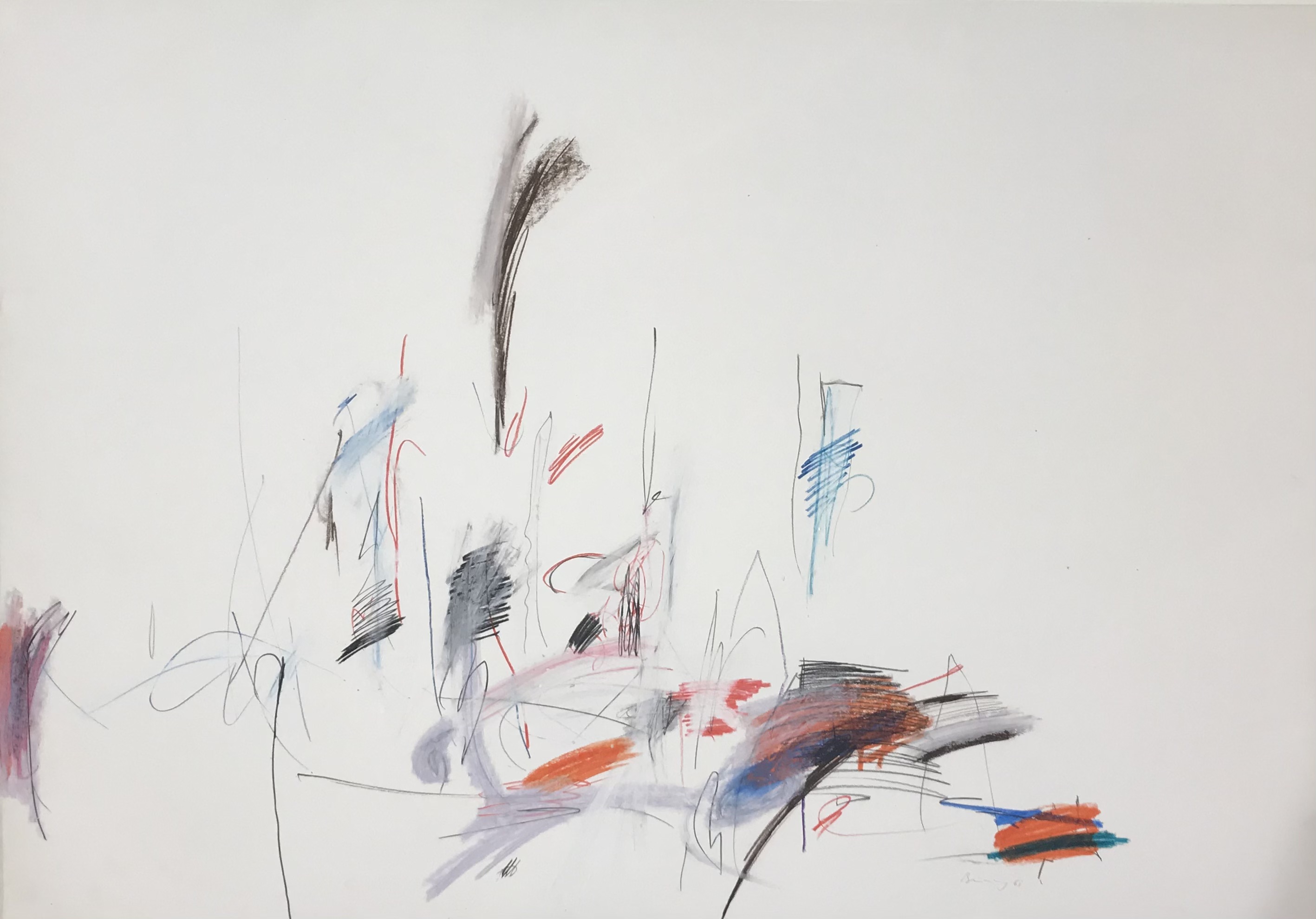 Jegliche Spuren eines wie auch immer gearteten Illusionismus verneinend und die Dunkelheit der Nachkriegsbilder hinter sich lassend, atmen die Werke dieser Zeit einen absolut freien, künstlerischen Geist und führen als offene, frei erfundene und spontan gesetze, chiffrenartige Kürzel zu einer eigenständig malerischen Poesie. Marie Luise Otten schreibt hierzu: "Die Komposition ist durch eine zunehmend festzustellende Vereinzelung der zeichenhaften Graphismen und farbigen gestischen Bewegungsspuren aufgelockerter und mehr von einem zeitlichen Nebeneinander auf der Fläche als einem gleichzeitigen Miteinander im Raum bestimmt, wodurch eine insgesamt flächenhaftere Räumlichkeit evoziert wird. Das Prozeßhafte, in der zeitlichen Ablesbarkeit an Palimpseste erinnernde, gleichzeitige Mit-, Neben- und vor allem Übereinander, das Verwischen der eingeschriebenen Bewegungsspuren und die individuellen Kürzel erinnern an Twombly, sind mit dessen Werk aber nur über die Affinität eines gemeinsamen geistigen Klimas verwandt. Die jetzt erreichte künstlerische Position liegt im eigenen Werk begründet, das der Auseinandersetzung mit dem Werk eines anderen Künstlers nicht bedurfte, aber zu dessen erneuter Klärung führte."